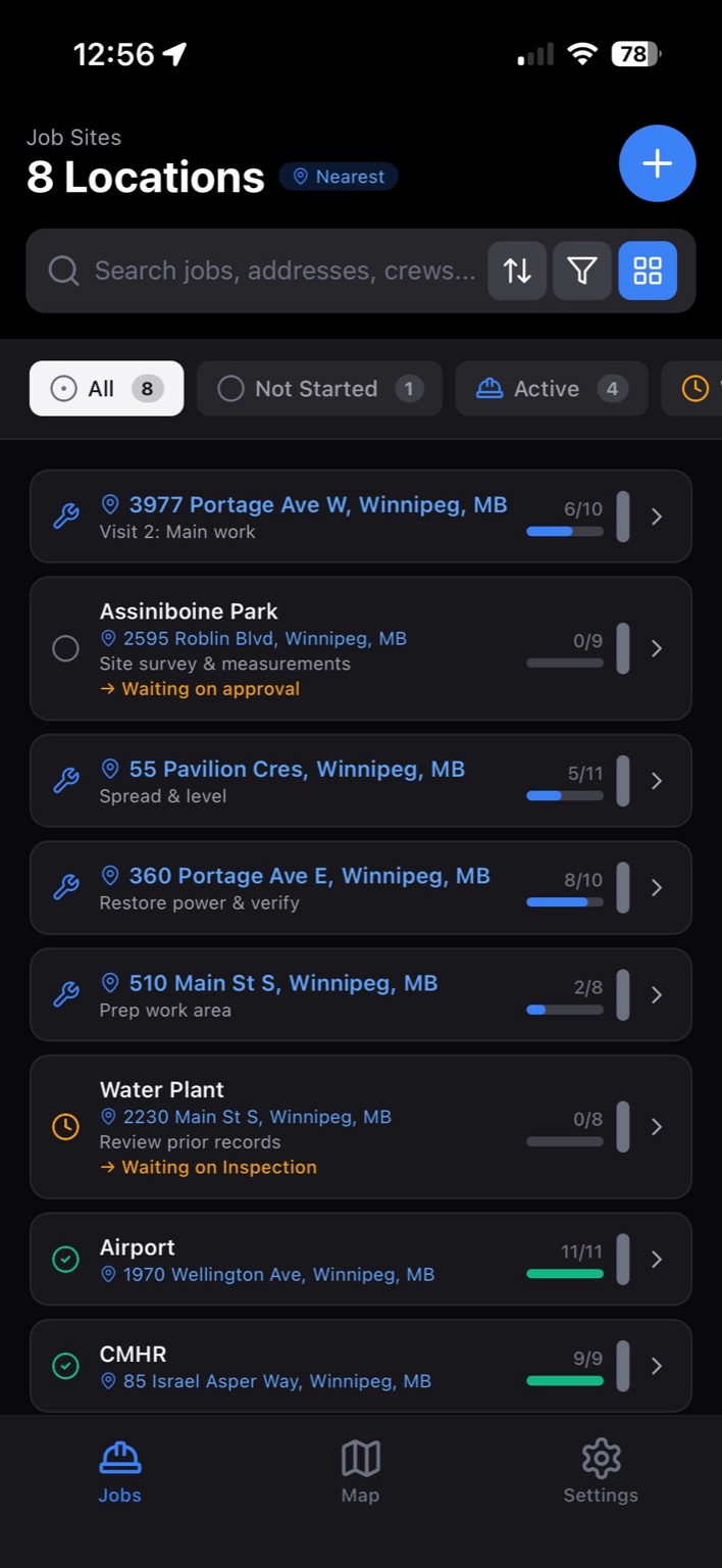 See every job on one map and know exactly what step each site is on — and what’s next.